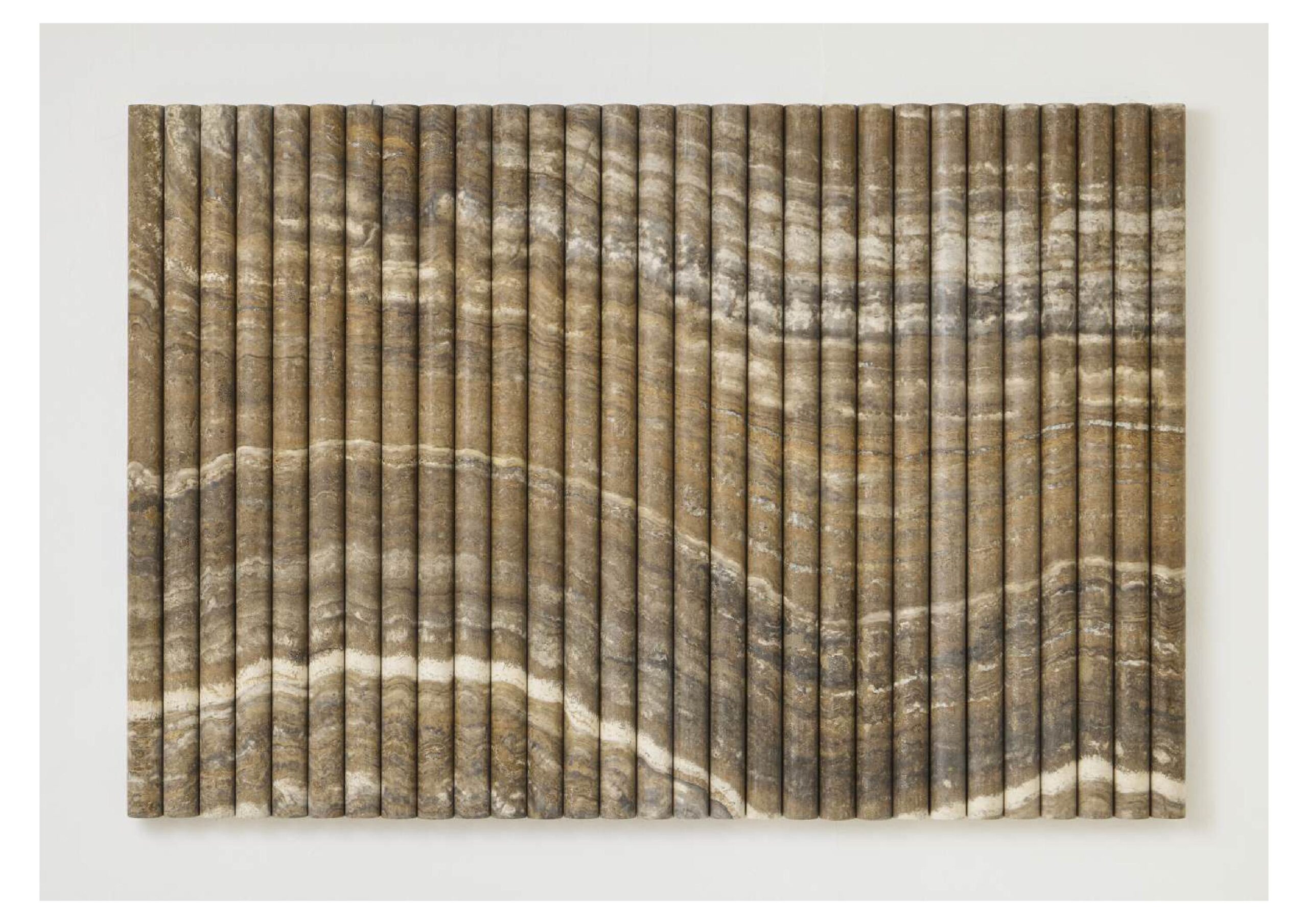 Hand-carved and polished Crater Fantasia travertine, duralumin