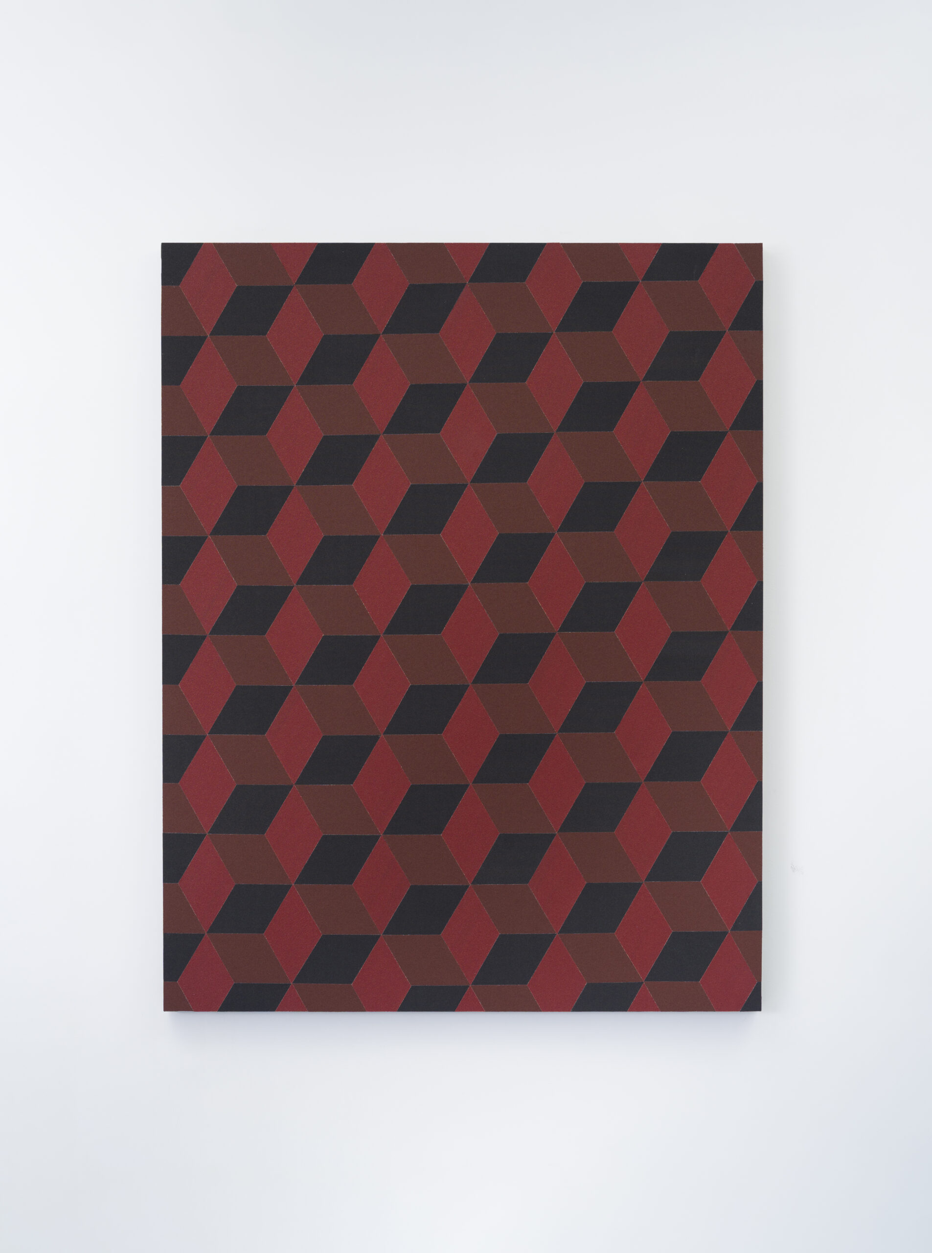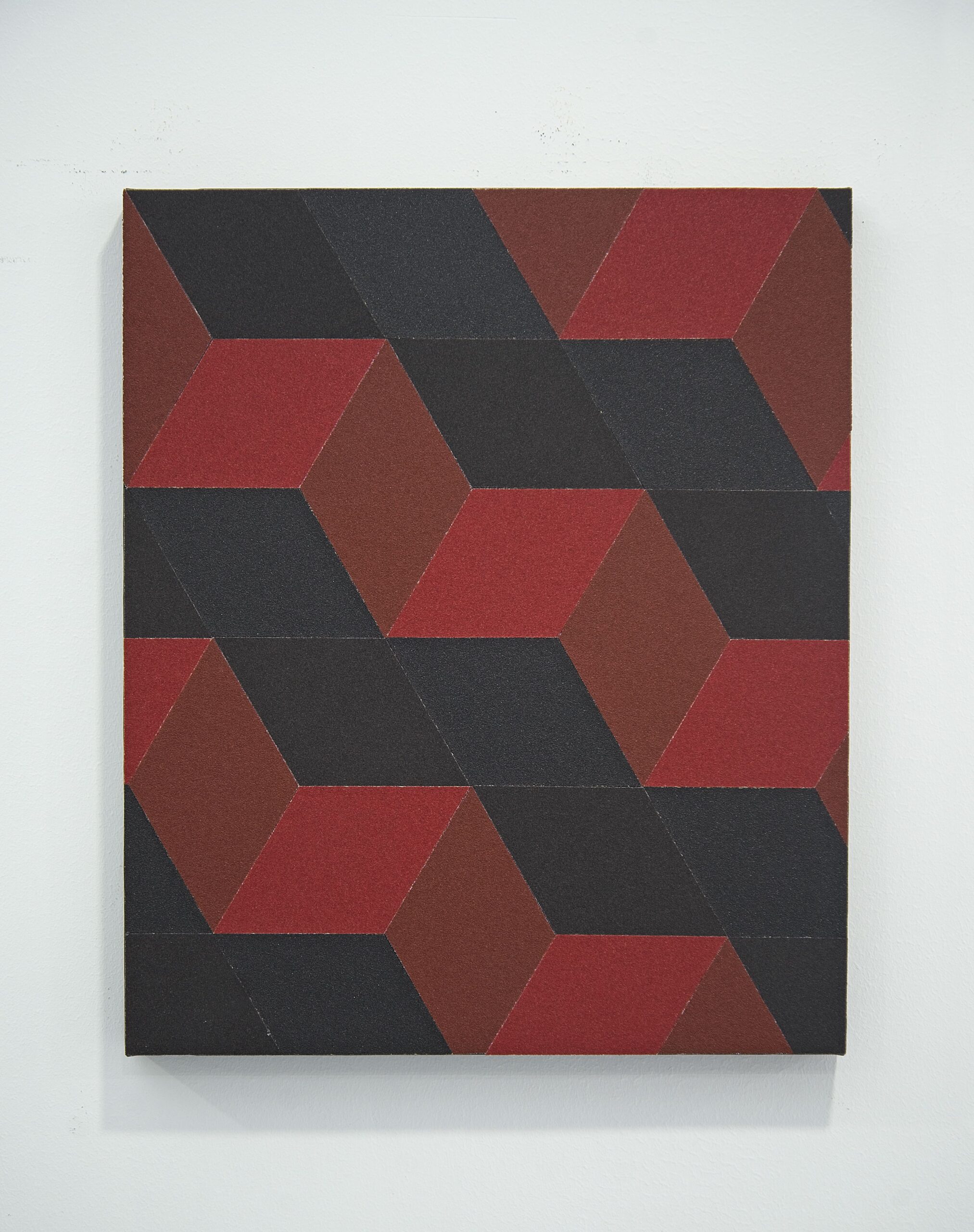 The works of the series Abrasive Paintings, for example, are made with black, white, red or yellow sandpaper with which the artist elaborates geometric patterns, almost always rectangular, alluding to bricks. An in principle innocuous design that hides an aggressive materiality, in a way that contrasts the “coldness” and simplicity of the rational design with a strongly emotional base. In broader terms, the artist seeks to make connections between this type of clashes and the contexts of the countries to which he is personally related, such as Spain or Chile, alluding to social problems and their historical roots.