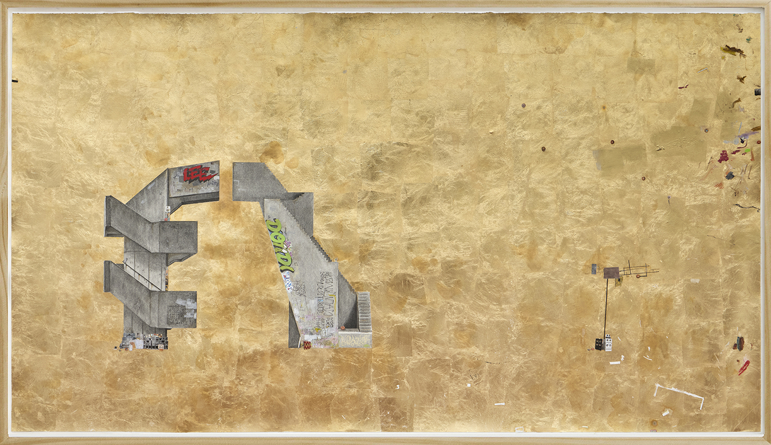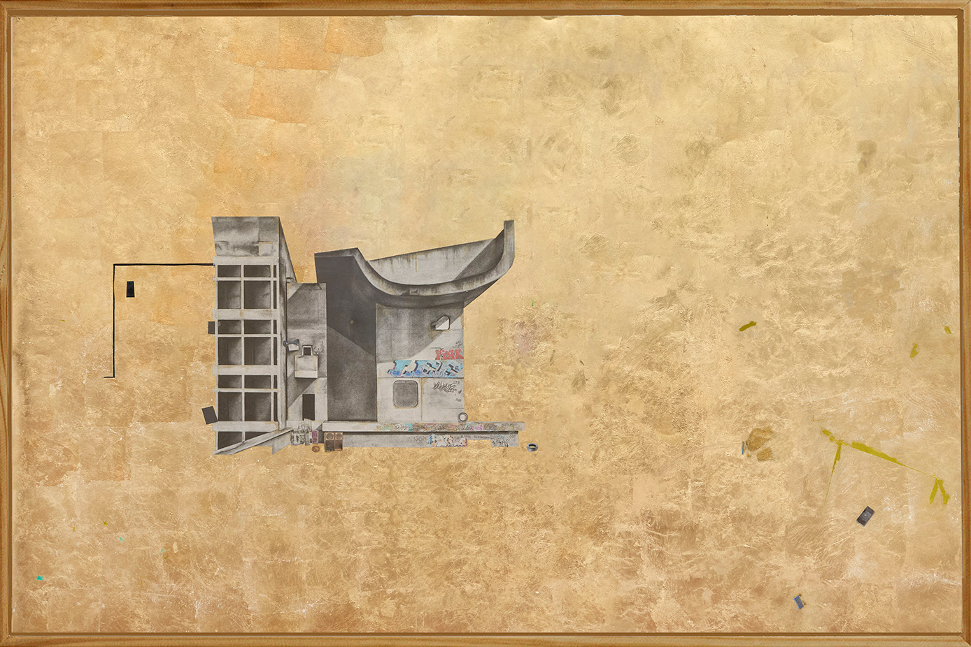 Ink, graphite, collage, collage, gold leaf on paper