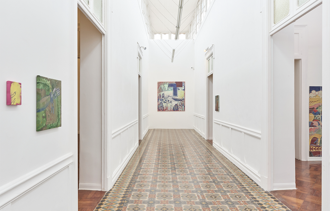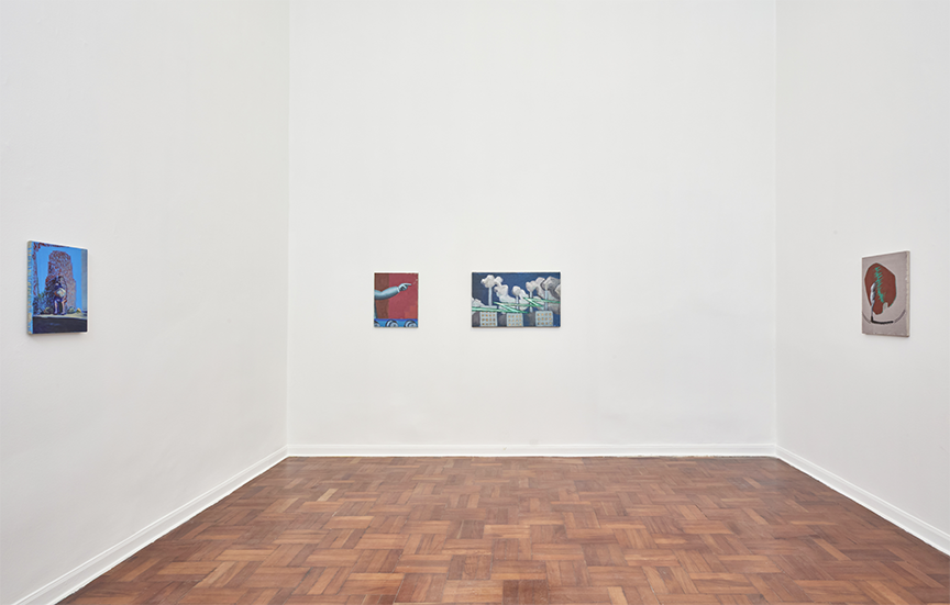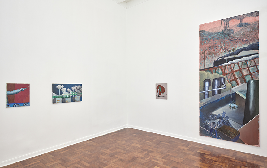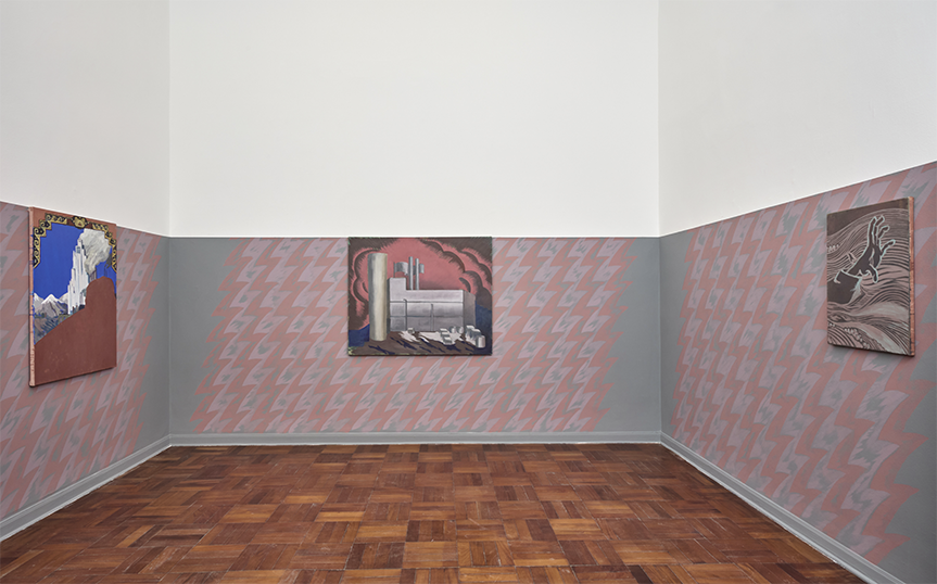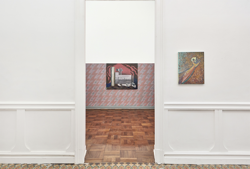 In this series of paintings, layers of time and matter overlap. They are realities that collide and come together to reveal a little-explored facet of artistic modernity, one found in illustrations and magazines, a functional and informative facet that must project a model of progress and sell resources, but whose resolution is contradictory and motley, and therefore kitsch, dense, and fluid.
