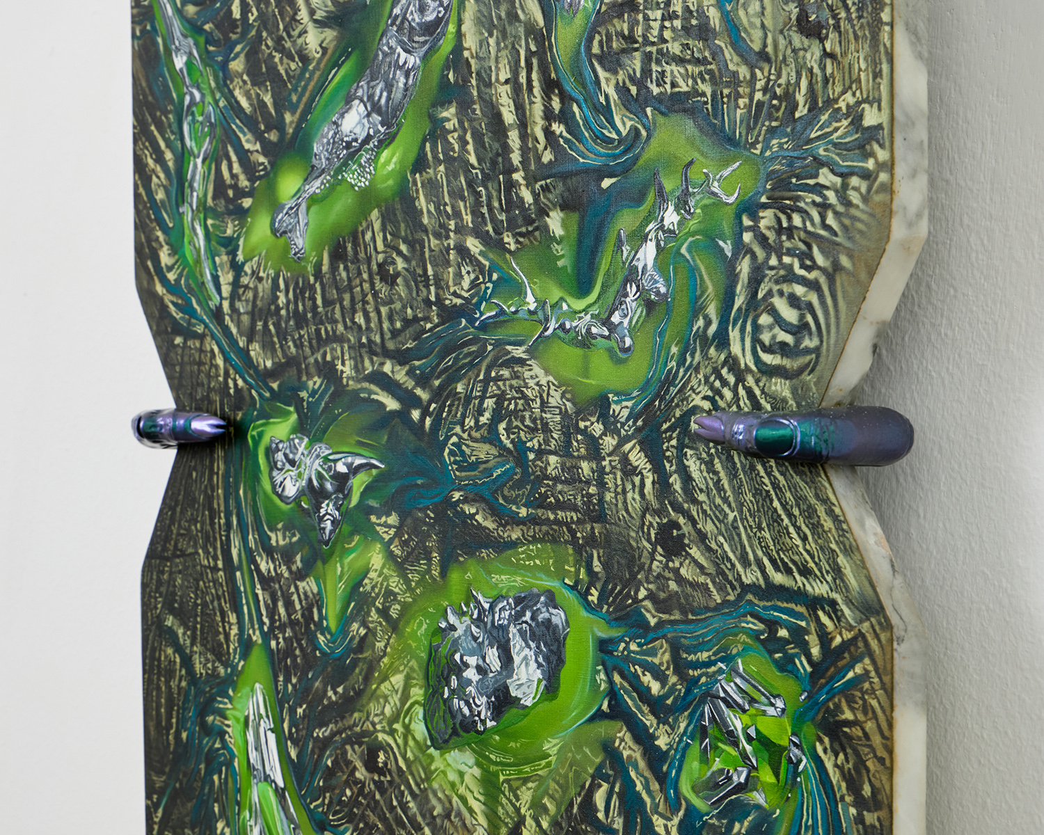 Oil on marble, stainless steel, ABS resin, and automotive paint