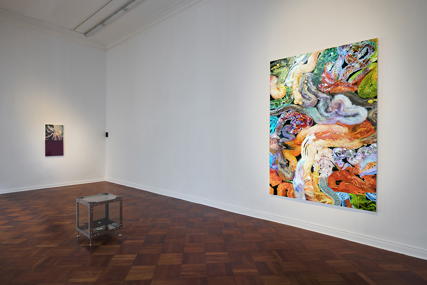 Oil on canvas, and plexiglass box with ABS resin elements
